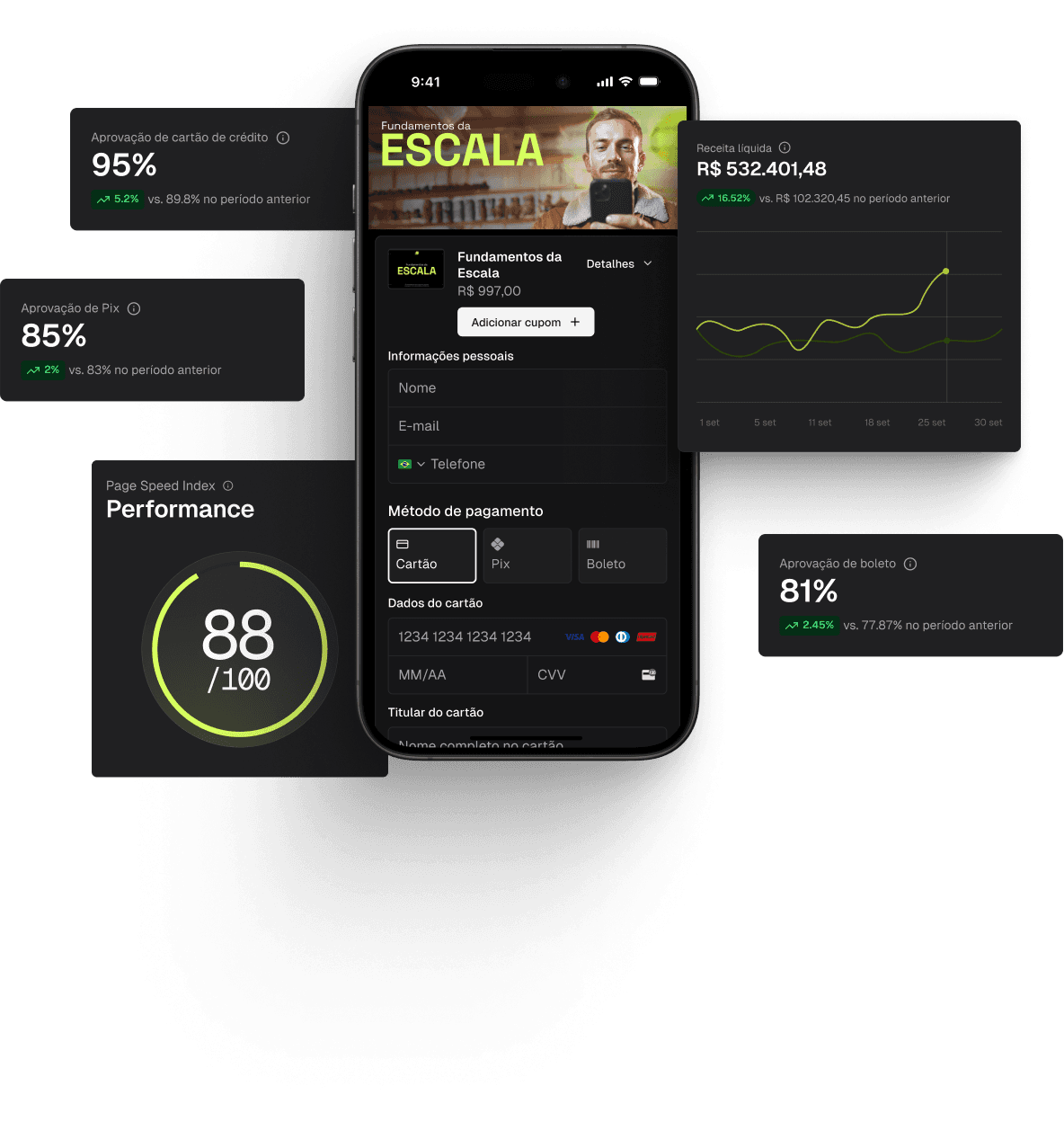 Compare a performance do seu checkout e sinta a diferença.